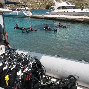 Außerdem können wir bei Bedarf Stage-Tanks vermieten. Mit unseren Kompressoren ist es auch möglich, Nitrox und Trimix zu füllen, sodass wir Tauchern weiterhelfen können, die Mischgastauchgänge machen möchten.
